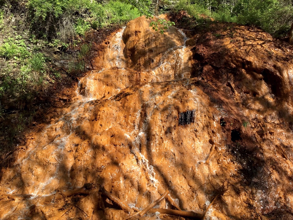 Apparently a coal mining company back in 1900 tapped into a vein laden with iron and sulfur pyrates. And it’s been spewing acid water into the local environment ever since.