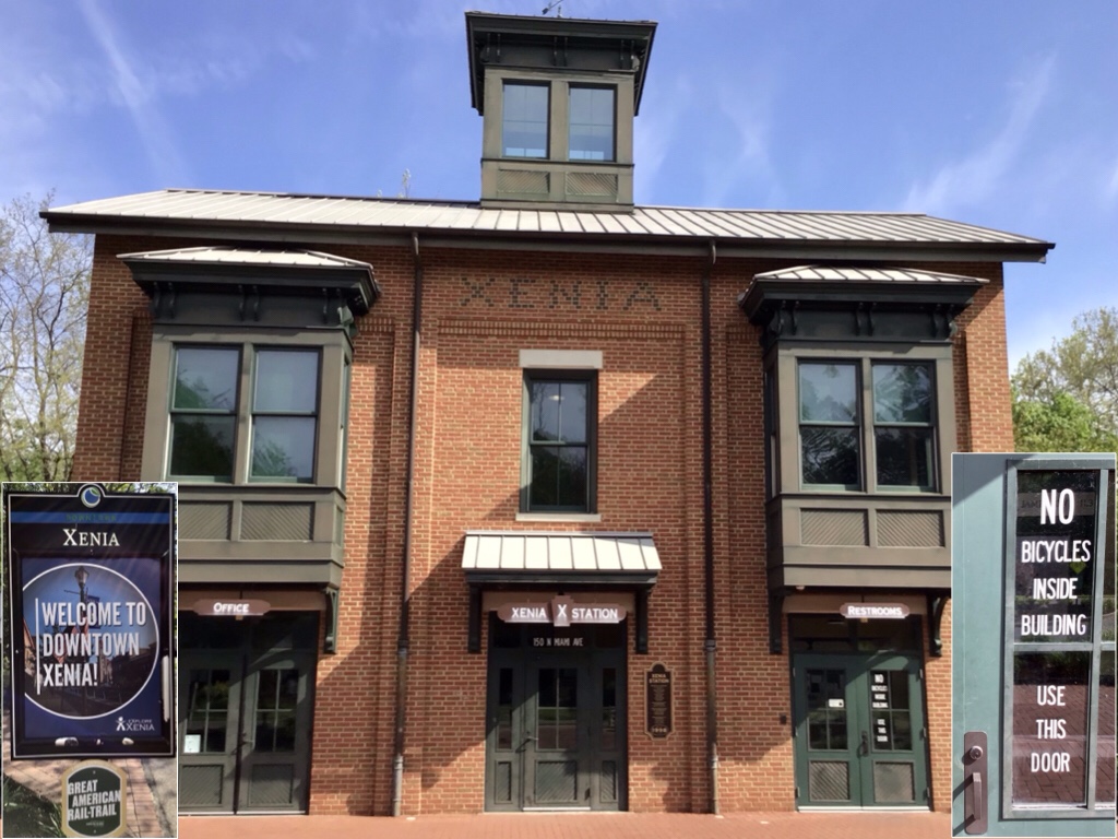 The point being that we eventually got ourselves to the trail town of Xenia. Like many trail towns it has turned its old railroad station into a reception center for cyclists and other trail users.