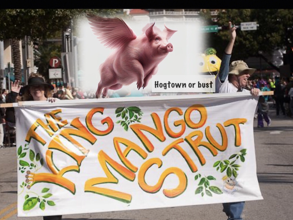 The zany procession will be a colorful light-hearted version of a traditional holiday parade. “The Pig” will celebrate all that’s weird and wonderful about Hogtown and poke fun at the year that was, 2023.