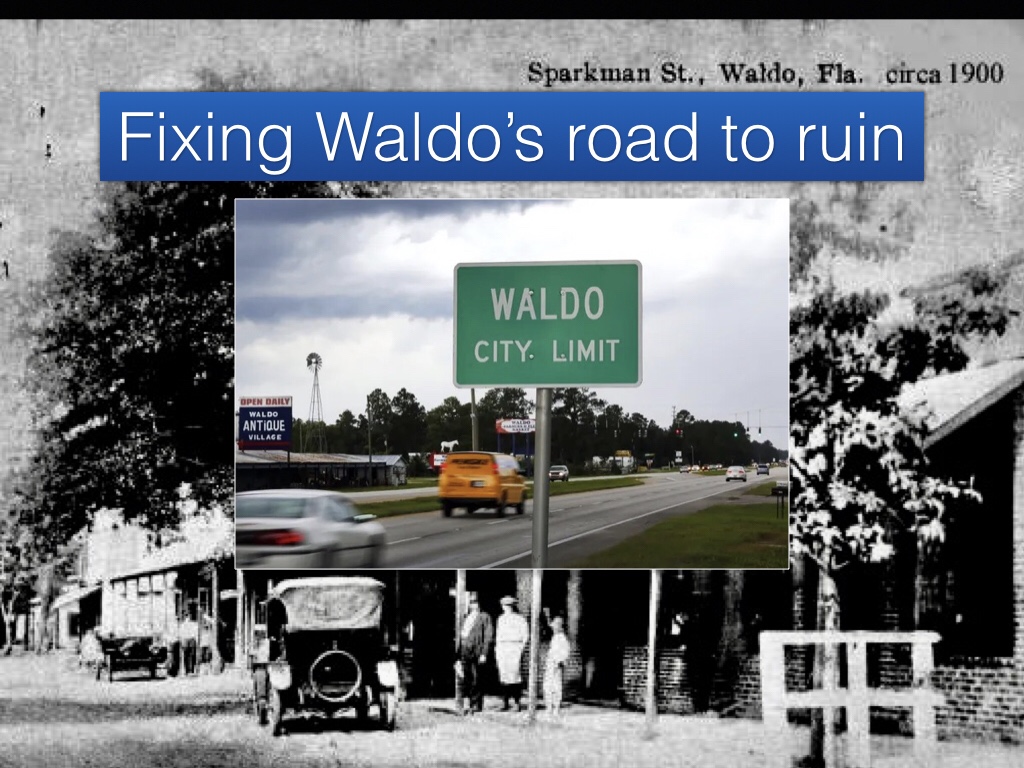 After being all but destroyed by the autoAmerican imperative of traffic flow first and above all other priorities, Waldo could sorely use a little FDOT break right about now.