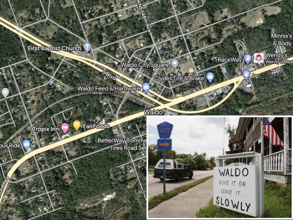 Tiny Waldo is riven by two major highways – U.S. 301 and Waldo Rd.