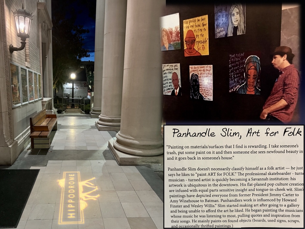 Wandering into the Hipp’s gallery I suddenly found myself caught up in the, um, colorful things that other people say. This complements of Savannah artist Panhandle Slim.
