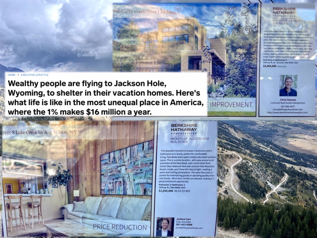 But truth be told, these days Jackson Hole has fewer cowboys roaming the range and and more millionaires and billionaires snapping up ranches and turning them into gated Xanadus.