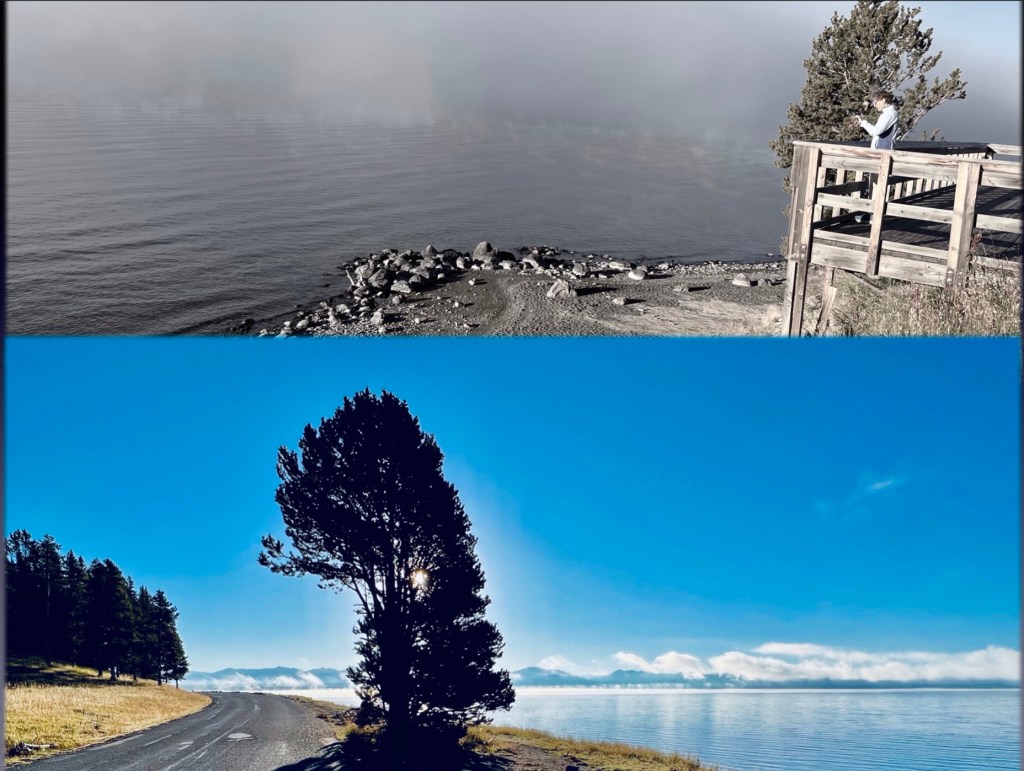 On our first morning I awoke early to a dense fog shrouding Yellowstone Lake.