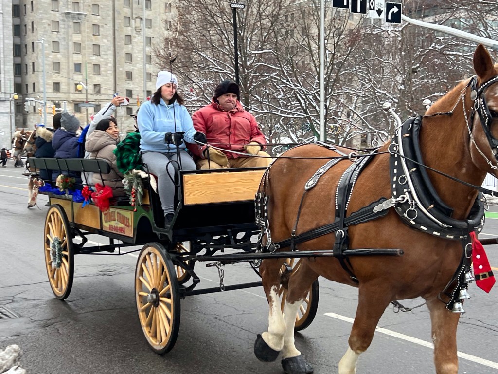 A long line of people waited next to the flaming cauldron (dedicated to Canada’s 150th birthday) to take a holiday horse carriage ride.