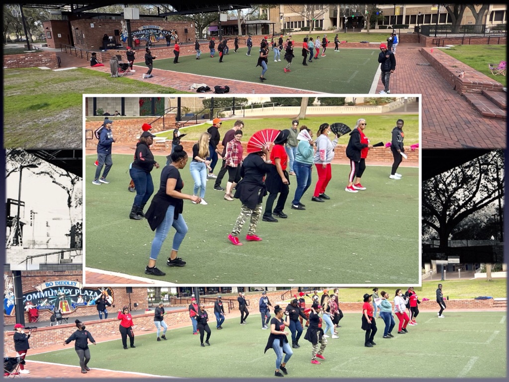 Dancing up a storm at Bo Diddley Plaza.