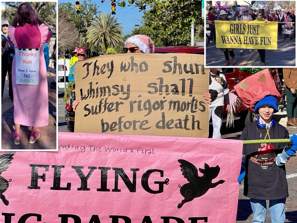The first annual Flying Pigs Parade had it all. Guys dressed like girls. Girls seeking fun. Dancers and chanters and cloggers and hummers oh my! More liberal causes than you could shake a shocked Republican at.