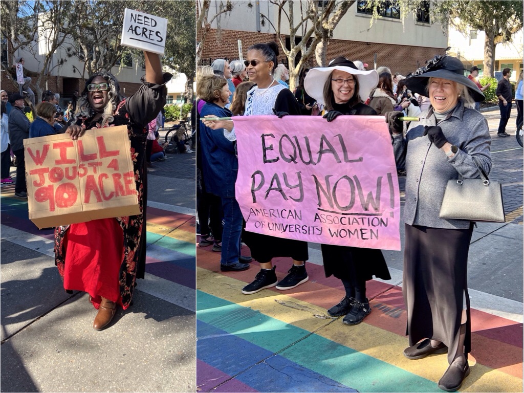 The jousters are looking for a new home. The AAUWers just wanna get equal pay.