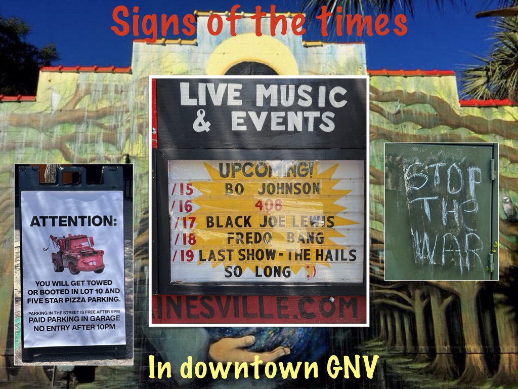 Nearly all of the signs in downtown GNV indicate that this is the place to be if you are searching for diversion, amusement, enlightenment…and of course music.