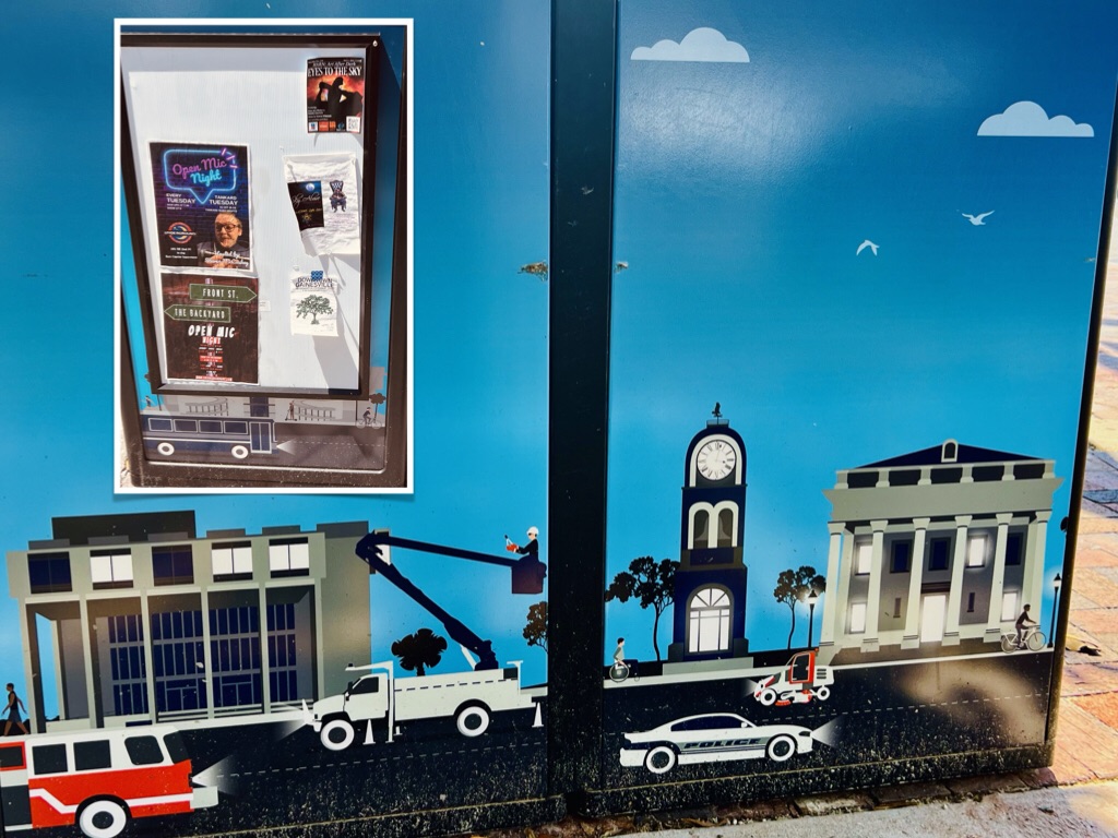I really like the City’s new downtown-themed trash dispensers. And officials thoughtfully put white boards on the side to accommodate still more signs.