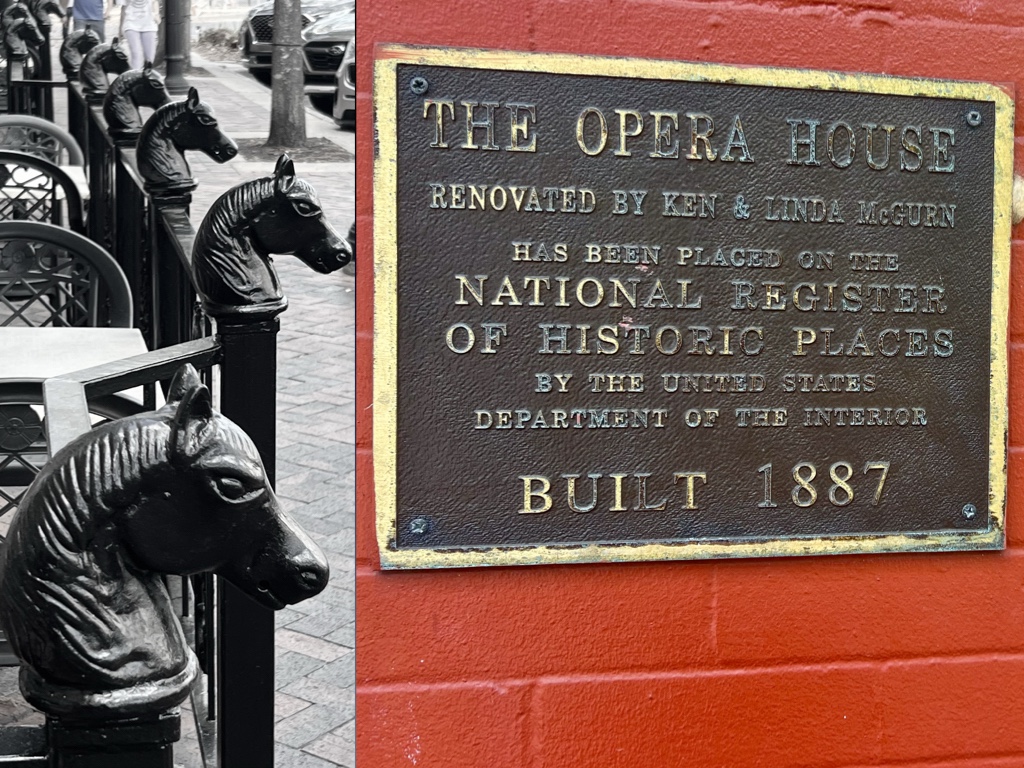 You can’t call Harry’s horse head wrought iron fence historic. Just iconic. The fence was added in 1993, when Ken and Linda McGurn renovated the Old Opera House and got it placed on the National Register of Historic Places.