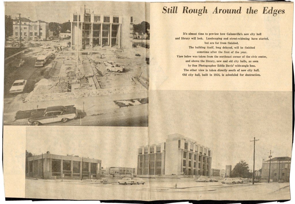 Well, in his book “Florida’s Eden,” John B. Pickard writes that construction of the new City Hall complex was an effort to put a more modern face on Gainesville’s previous “antiquated” 1928 circa City Hall.