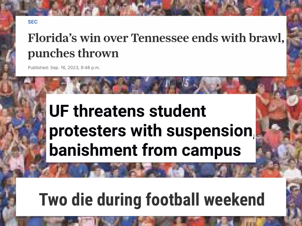 Listen, we may never know who were those unnamed outside agitators running the demonstrations. But if I had been one of them I would have advised those so-gullible students to hold their, um, fire until the next Gator baseball, football or basketball game day.