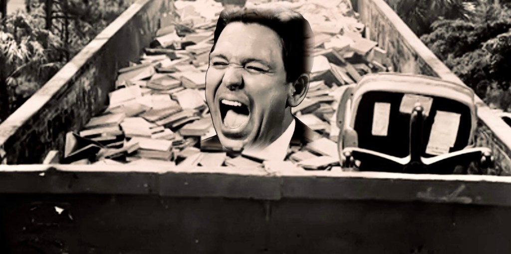 Floriduh men! You don’t throw banned books into an open dumpster for all the known universe to see!