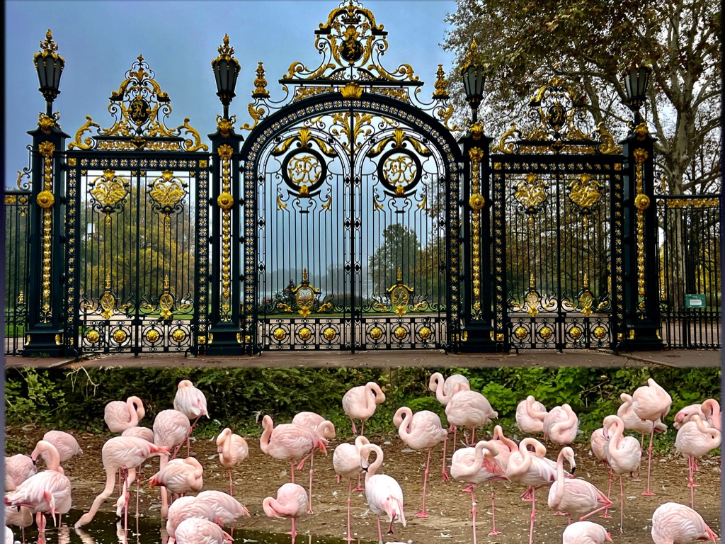Only to discovere a flock of flamingos conspiring in menacing fashion.