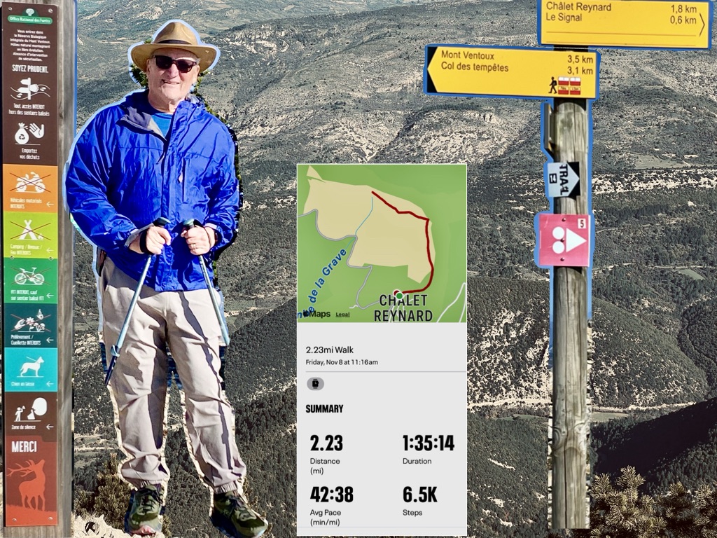 Still, I did walk 2.23 miles from Chalet Reynard to maybe almost nearly halfway to the summit of MV. And I woulda walked even further except that we came to the Windex Passe (French for Windy Pass) and I discovered that while the spirit was still willing, the flesh was caving in under the pressure of freezing, hurricane-force winds.