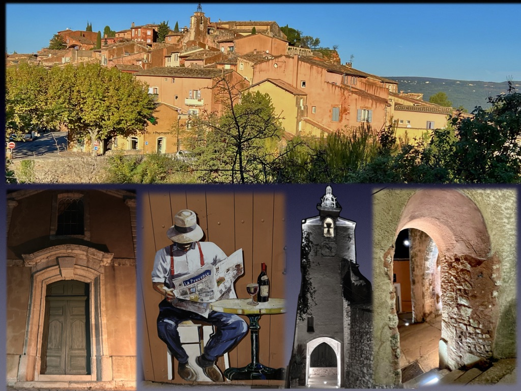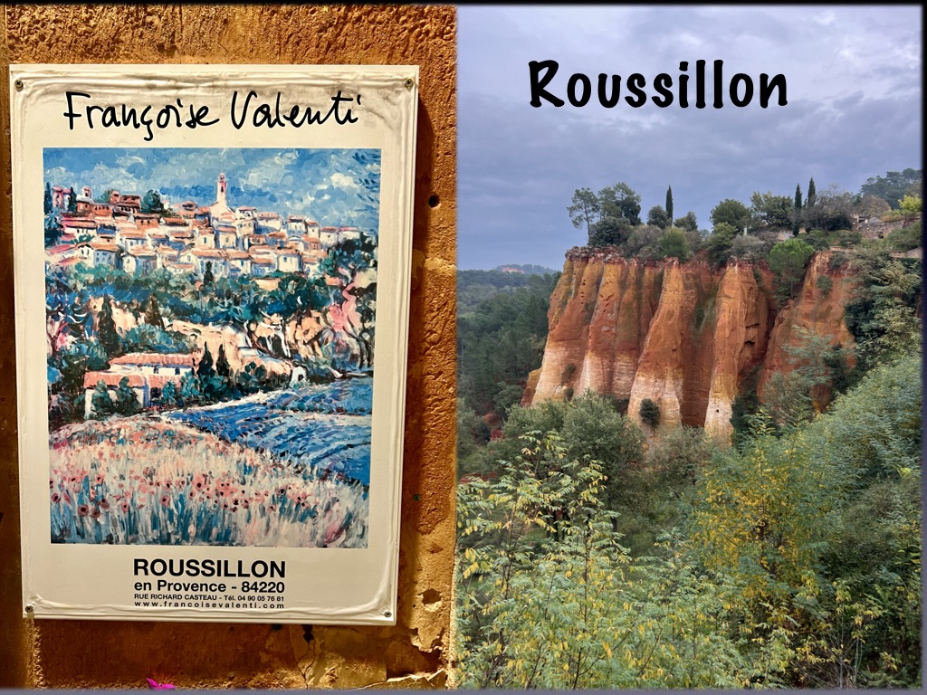 Roussillon is an honest go gooodness pink village. This due to the famous Ochre Cliffs from which the village derives its building material (or its pink paint, I forget which.)