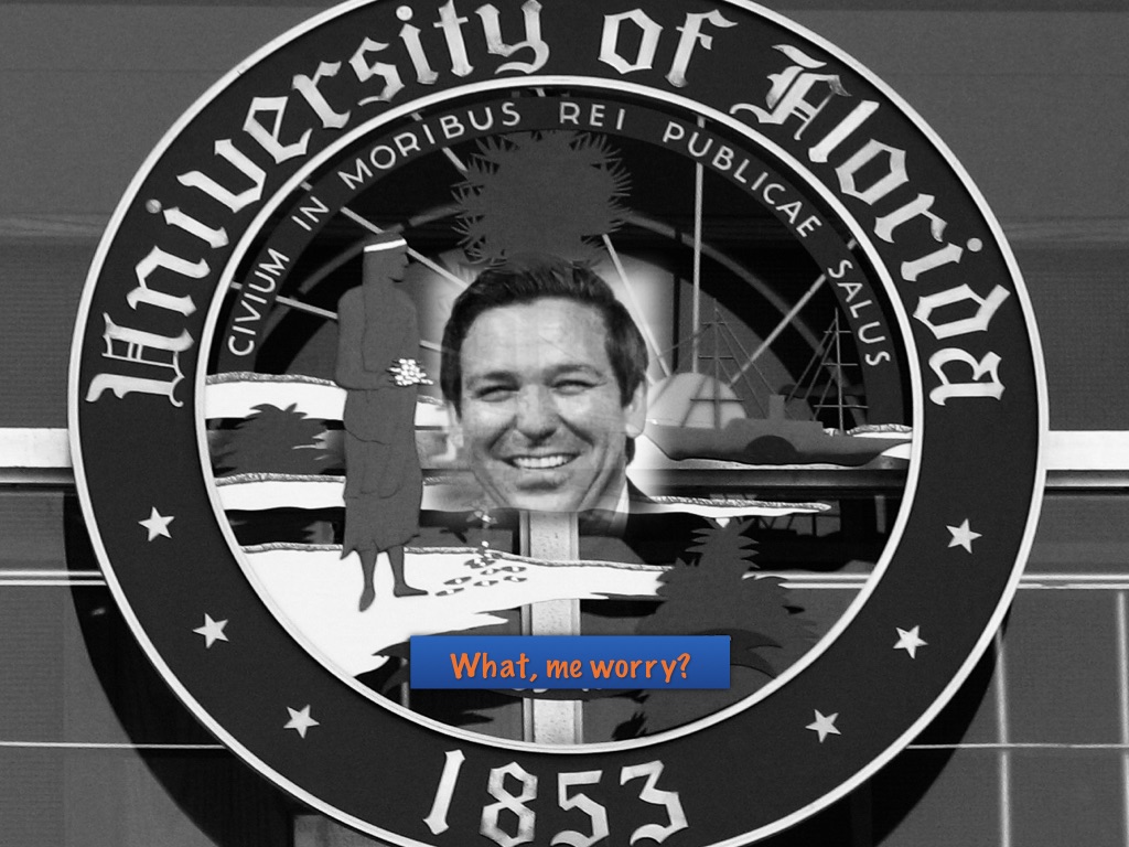 Over the past few years, here in Florida, The Great DeSanitizer has thoroughly purged, censored, suppressed and intimidated presidents, faculty and students alike. When it comes to taming the academy Trump’s an amateur compared to our anti-Ron.