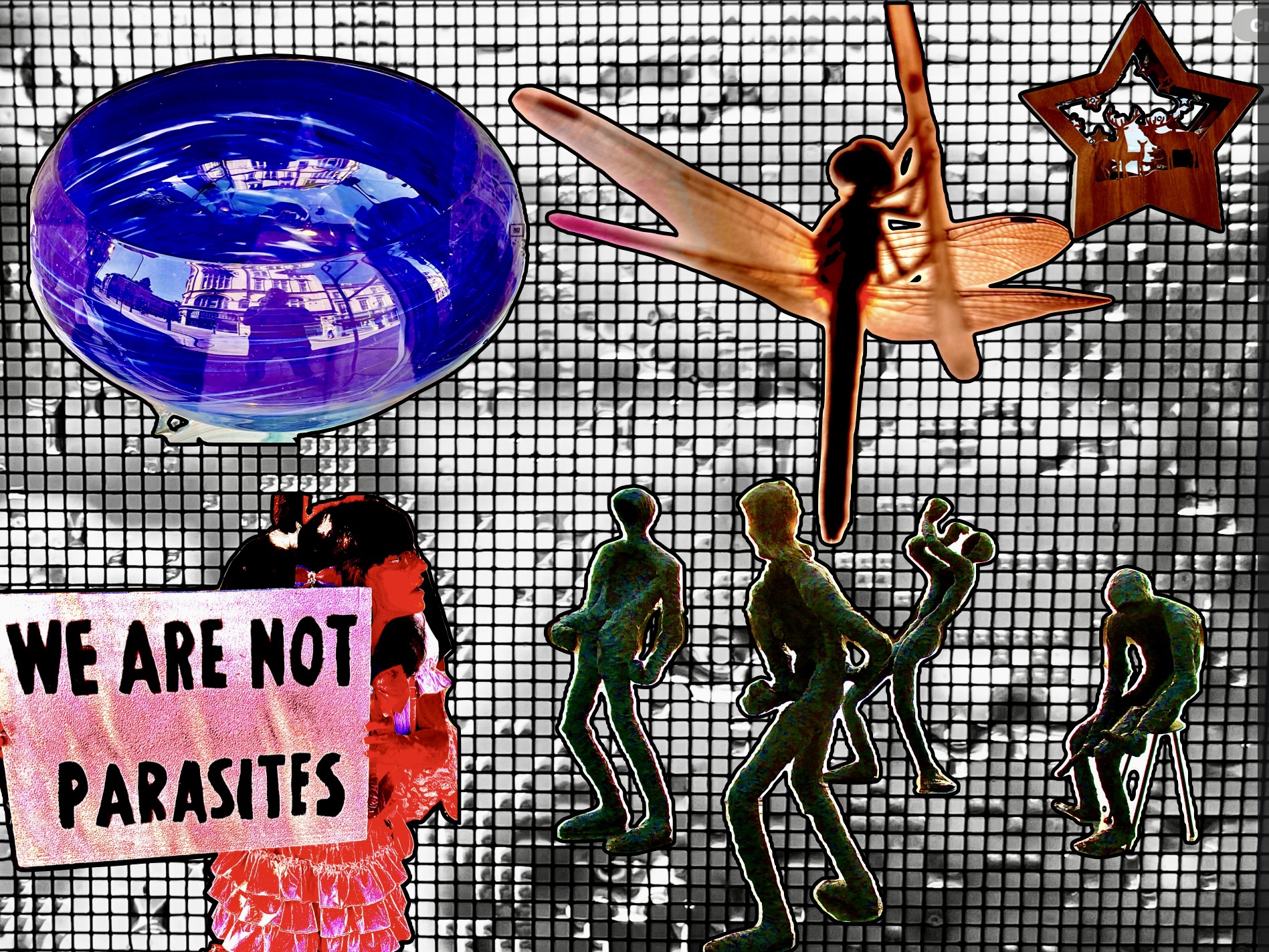 The “We Are Not Parasites” sign came from the “Hands Off” demonstration here in GNV.