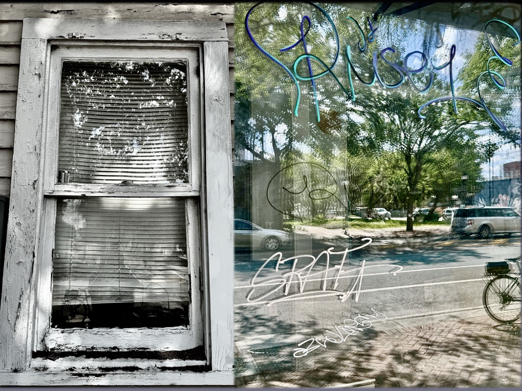 I stopped by the other day to walk around and take photos of these once vital business dwellings And as I contemplated the peeling pant, rusting metal roofs, scrawled graffiti, dead vegetation, barred doors and such…