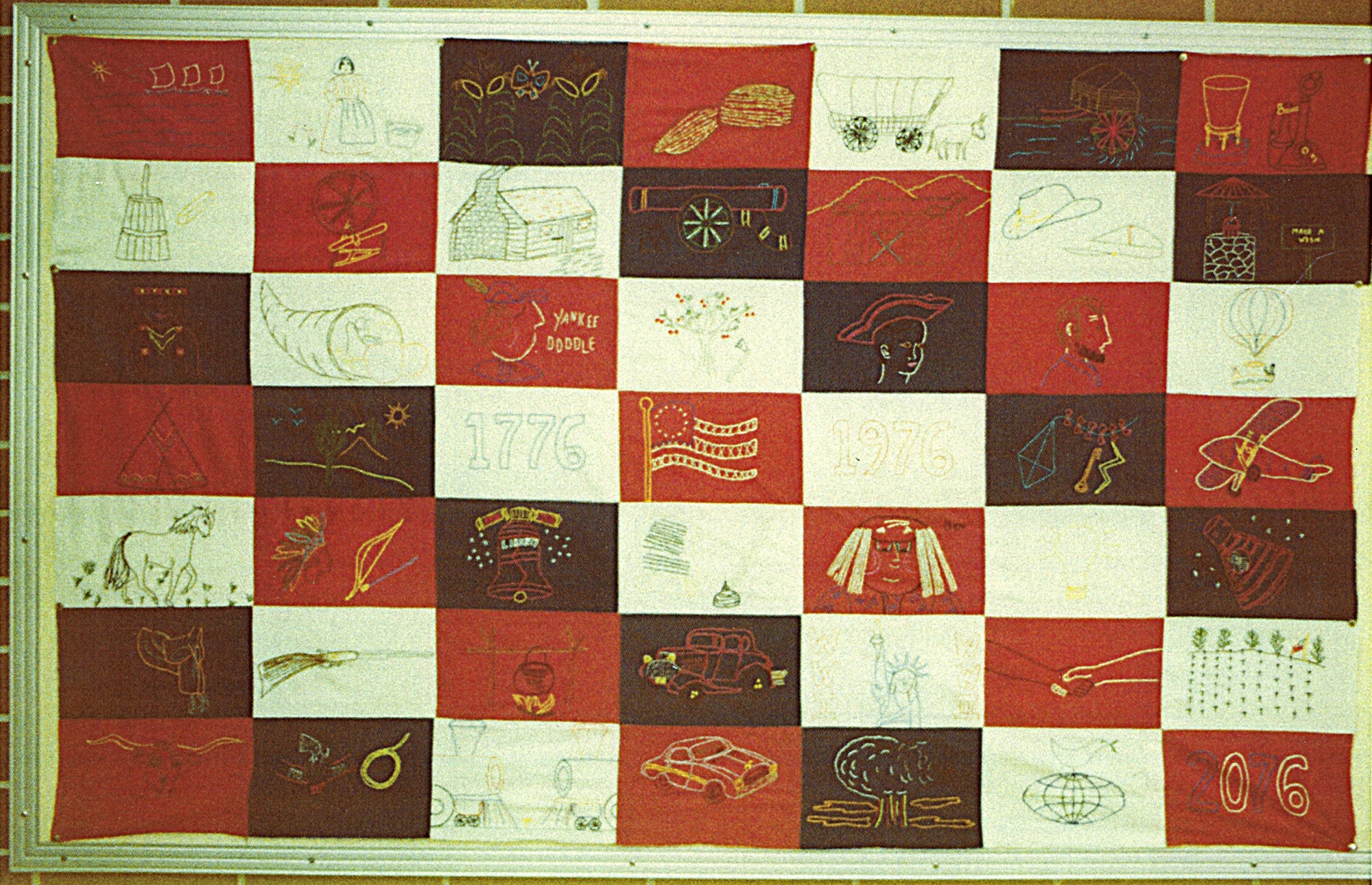 In 1976 students in Karen Gutman Paige’s sewing class at Sidney Lanier created this wall hanging as a tribute to America. It was on display in the lobby of the old Gainesville Sun building to celebrate America’s bicentennial.
