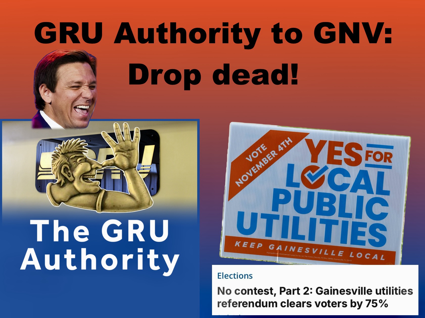 And never mind that GRU’s owners have three times voted, by more than super-majority margins, to take their utility back from state seizure.