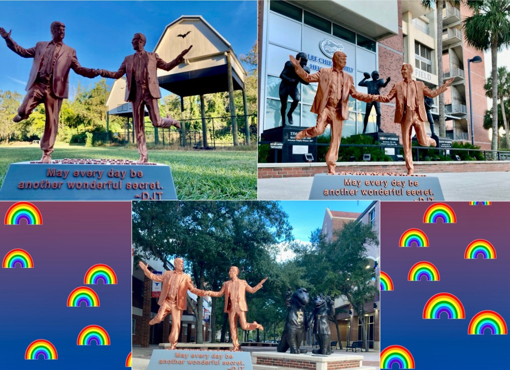 The frolicking felons popped up outside UF’s Emerson Hall next to Albert and Alberta.