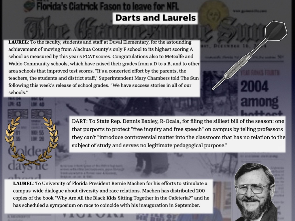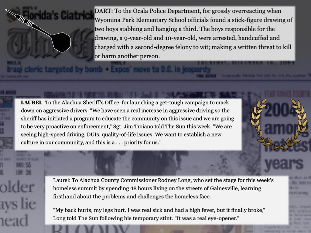 Darts & Laurels was already a Gainesville Sun opinion institution long before I was named editorial page editor back in….oh, I dunno…the Dark Ages maybe.