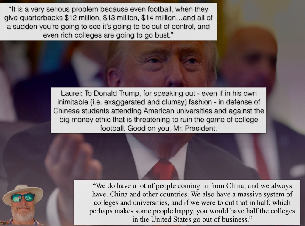 Trump’s defense of Chinese students attending American universities comes in marked contrast to The Great DeSanitizer’s xenophobic crack that “I’d rather have none” when it comes to, you know, those people despoiling Florida universities and colleges.