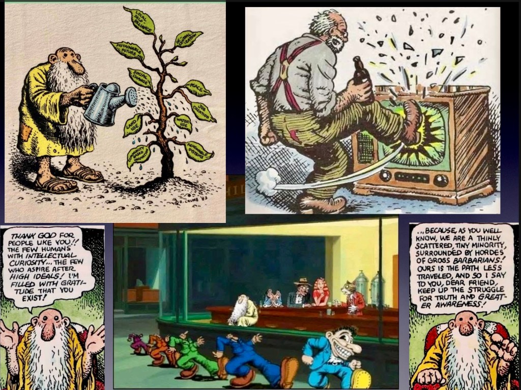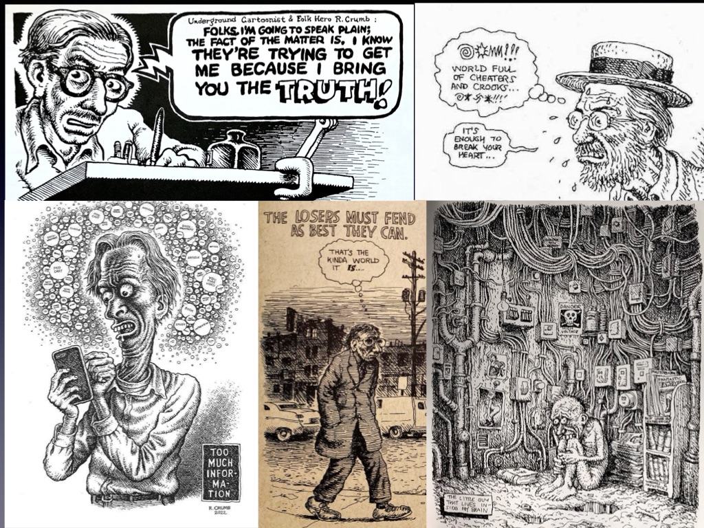 As someone who has written millions of words about those issues, I’m here to say that Crumb is an ink-slinging Paul Revere when it comes to sounding the alarm and trying to Save Us From Ourselves.