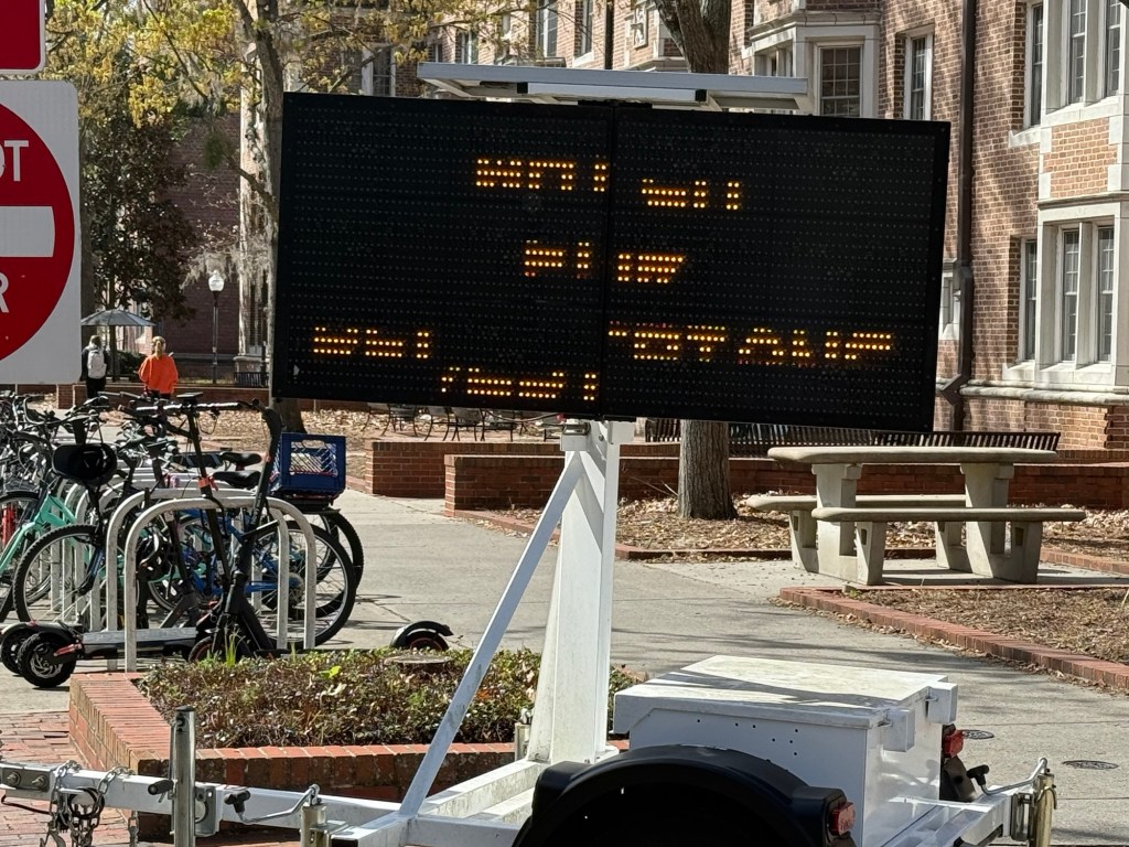 That sign appeared after a 19-year-old student was run over by a box truck on Tuesday. So it was certainly timely.