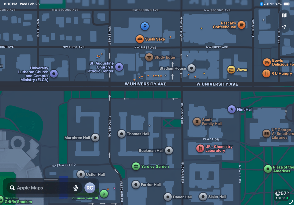 If UF were to extend GNV’s one-way pair design onto campus – moving cars from Fletcher to Stadium Road to Buckman, it would seem to make for a more more rational, seamless flow of traffic and people headed on or off campus.