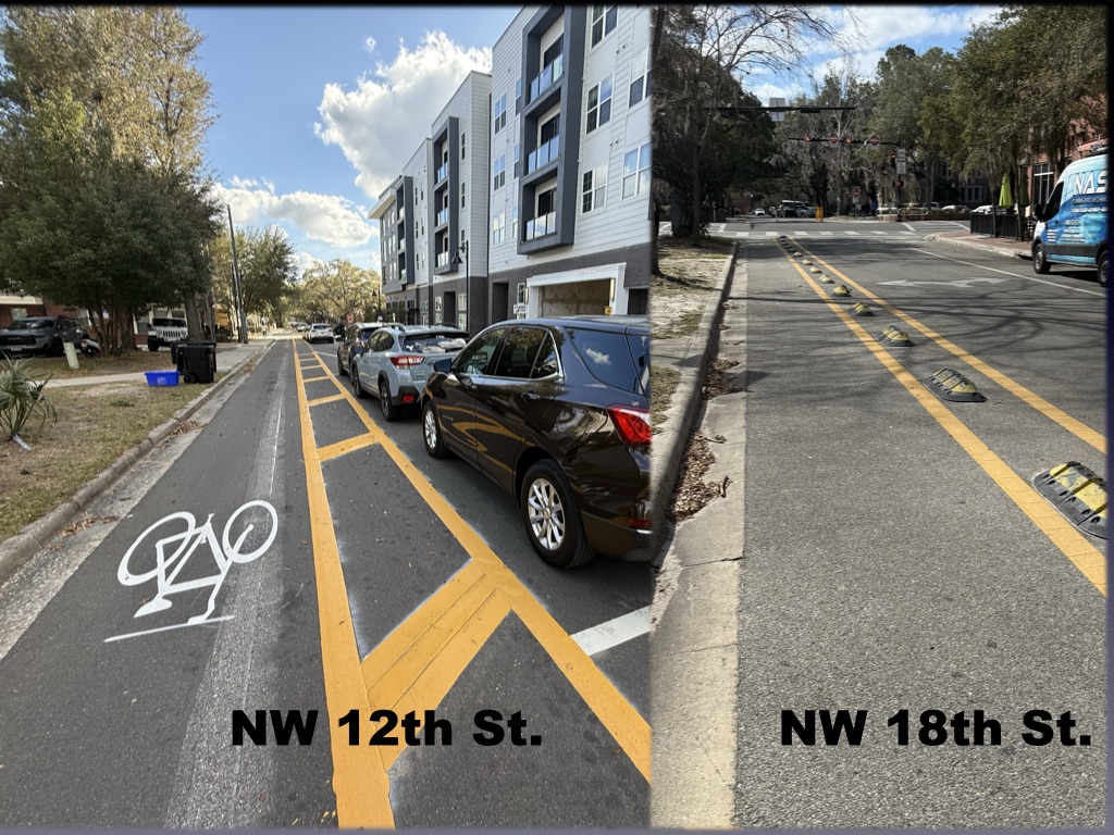 Recently I posted a blog about GNV’s one-way pair street designs on NW 17th and 18th streets just north of University Ave.