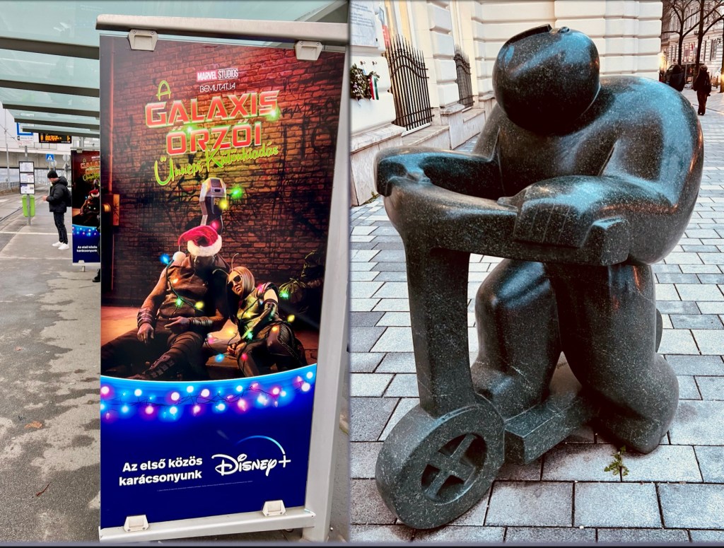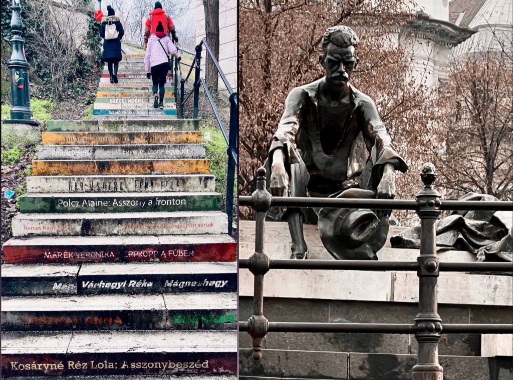 They are also quite proud of their literary heritage. There is a flight of stairs depicting the many works of Hungarian authors. And a statue of a decidedly gaunt poet Jozsef Attila.